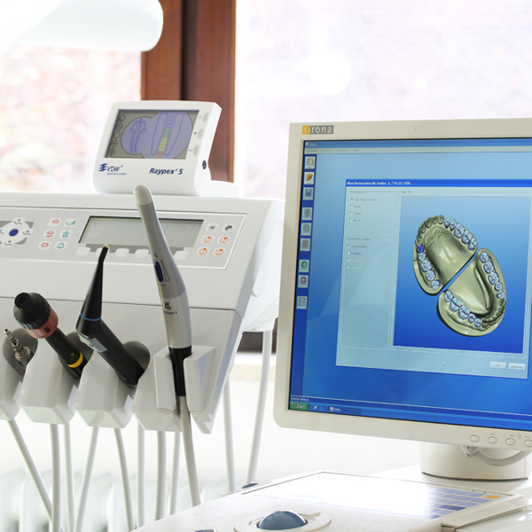 Unsere Praxis besteht aus zwei modernen Behandlungsräumen, einem Prophylaxeraum, Wartezimmer und Empfangsbereich. Die Behandlungsräume sind mit modernsten medizinisch-technischen Geräten (intraorale Kamera, CEREC) ausgestattet.
